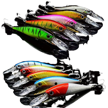 Paquete de 10 Señuelos de Pesca de plástico cebos duros Minnow Crankbait Swimbait señuelo Kit anzuelos agua dulce agua salada trucha lubina